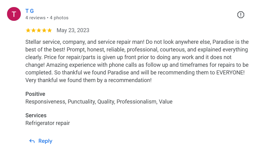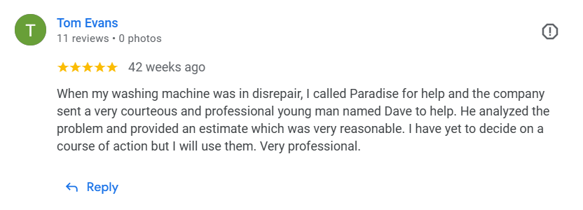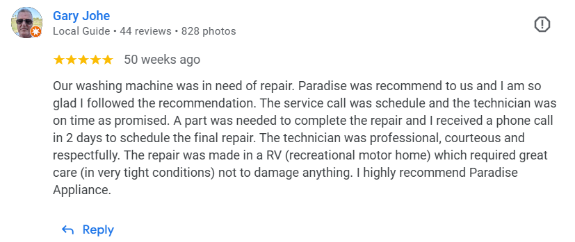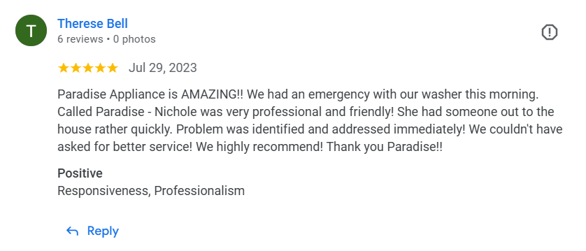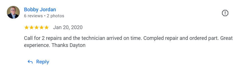 We strive to get to your appliance as quickly as possible so you can get back to normal! We understand the hassel of a broken appliance!